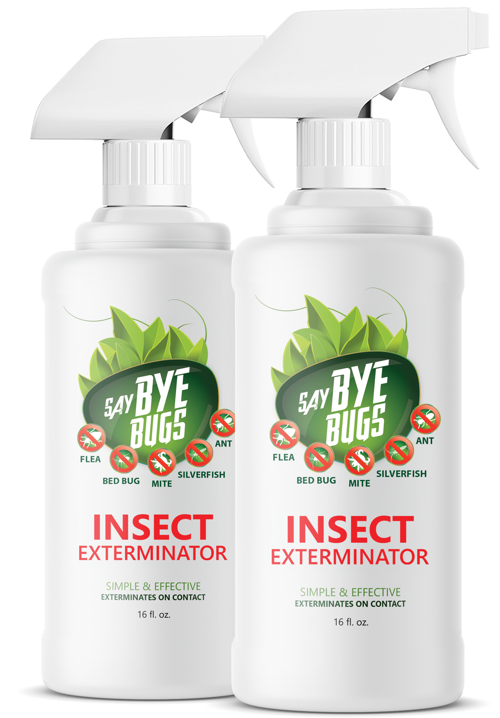 During active insect outbreaks spray Say Bye Bugs Exterminator thoroughly twice daily in all potentially infested areas. Although adult insects may not be present, their microscopic nymphs or eggs may be. Say Bye Bugs eradicates insects in all stages of their development. If the infestation persists after prolonged treatment consider using additional insect specific methods for infestation removal and reinfestation prevention.